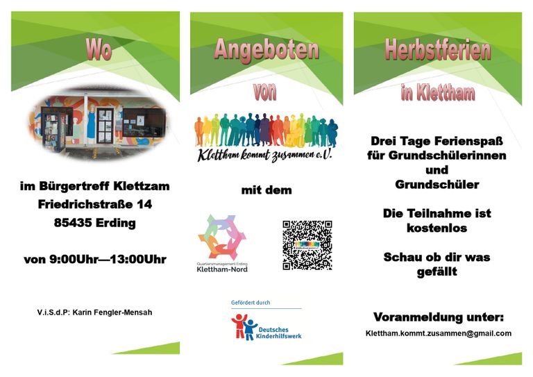 Die Stadt Erding hat im September 2024 das Bürgertreff Klettzam eröffnet und die Nutzung der Räumlichkeiten des Quartiersmanagement Klettham – Nord und dem Verein Klettham kommt zusammen übertragen.